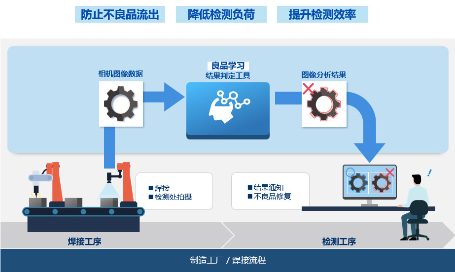 用AI实时检测焊接工序中的不良品,并通知检测人员进行修复