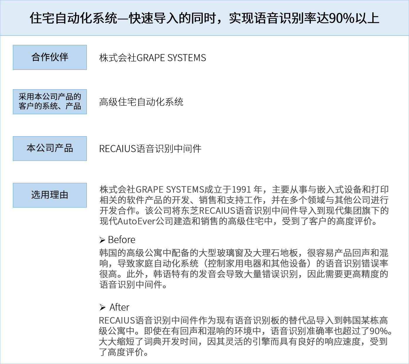 有关东芝语音识别与语音合成的成功导入案例,请参考如下说明。