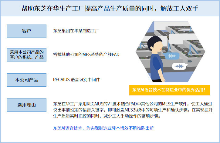有关东芝语音识别与语音合成的成功导入案例,请参考如下说明。