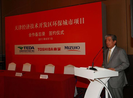 企业新闻东芝与天津经济技术开发区就开展楼宇环保业务达成合作意向Thu Jun 02 21:50:42 CST 2011东芝今日连同日本瑞穗实业银行与天津经济技术开发区管理委员会以楼宇节能业务推进为主题签订了合作协议,东芝以及日本瑞穗实业银行今后在开发区内开展节能环保业务时,可以享受到税务以及各种行政服务方面的优惠等措施,将在天津经济技术开发区内积极扩展环保方面的业务 -