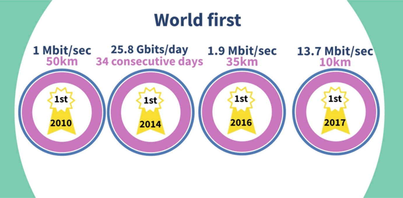为了推动QKD进入主流市场,专家们正在尝试进行更远距离的量子密钥传输。东芝的QKD技术领先世界,在该领域开创了一系列先河,我们在英国电信的现有网络中成功实现了量子密钥的传输分发。东芝的QKD系统可以通过100公里长的标准电信光纤进行密钥分发,传输范围能满足大城市的通信需求。