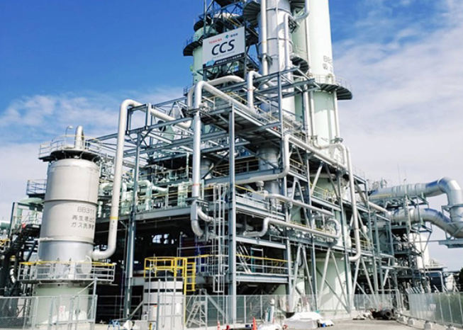 碳捕捉、利用与封存(CCUS)技术,就是捕捉并回收发电站排放的二氧化碳,将其用于种植农作物或培养藻类等用途,或者直接封存到地底深处的技术。虽然现在可再生能源的应用备受各界关注,但短时间内火力发电不可能退出历史舞台,电力的稳定供应仍然需要火力发电。鉴于此,如何削减碳排放,能否对二氧化碳加以有效利用,已成为应对气候变化的重要课题。东芝参与了多个碳捕获、利用与封存项目,其中之一是日本福冈县大牟田市三川发电站的大规模碳回收实测项目。该项目每天回收的二氧化碳超过600吨,占发电站单日总排放量的一半以上。