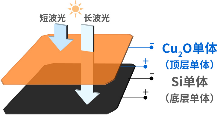 东芝的串联型太阳能电池将Cu₂O材料(氧化亚铜)电池和传统硅材料电池组相结合,其中Cu₂O材料实现了全球最高发电效率8.4%。