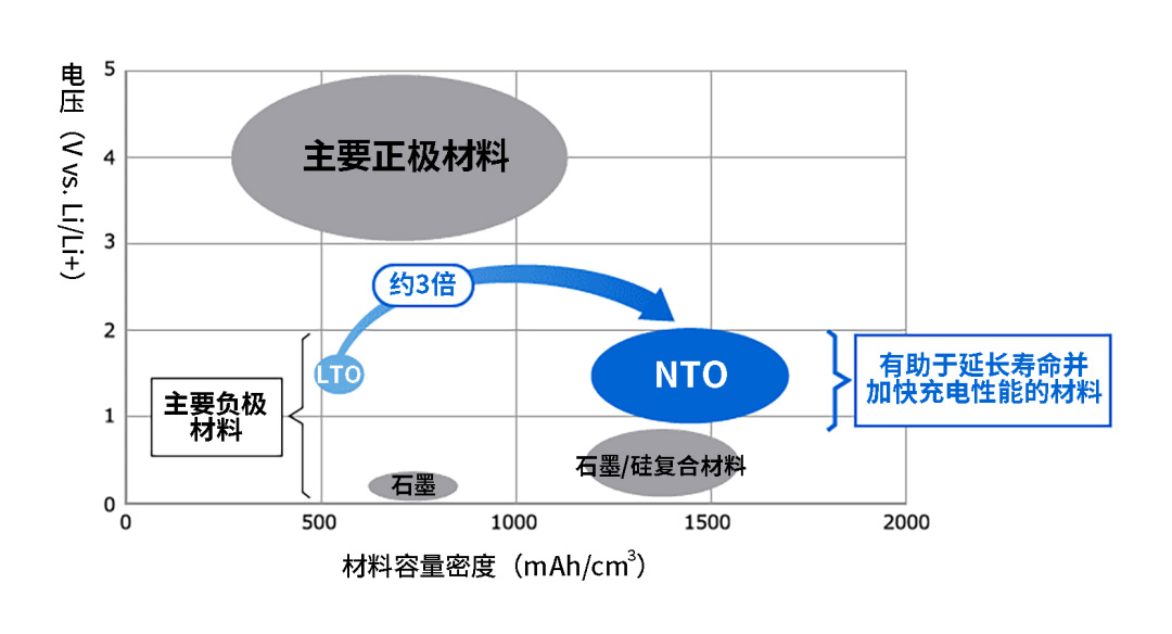 即使SCiB™得到了较好的发展,东芝也未曾停止对负极材料的探索。东芝目前正在研究将铌钛基氧化物(NTO)用作下一代负极材料。在兼具LTO寿命长和充电快的优点同时,NTO的理论容量密度约为LTO的3倍。
