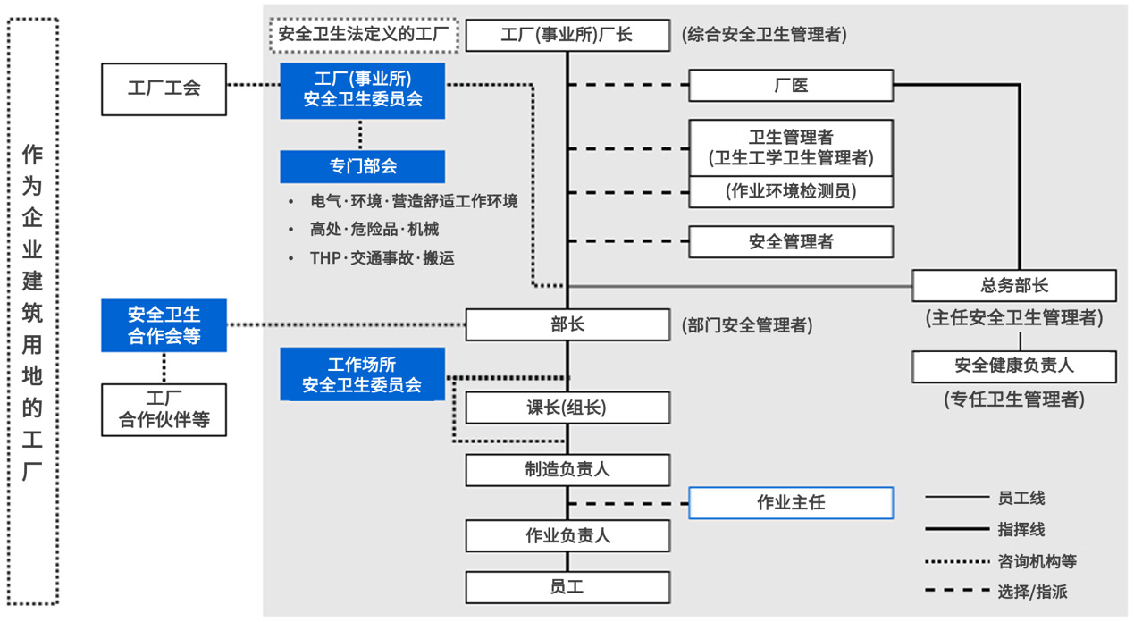 各事业所(或集团公司)需要履行法定职责,除了选派专职人员、召开安全卫生委员会会议以外,还设立可以自主管理的专门委员会、职场委员会等,根据作业内容和工程风险,积极采取追加措施。