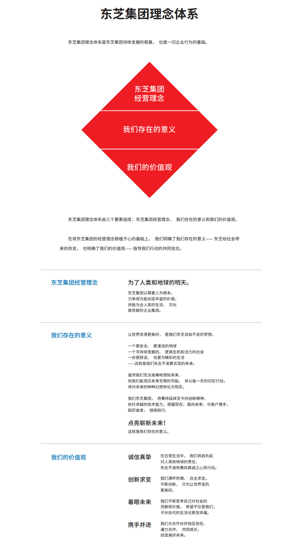 视频追踪采访了践行东芝集团理念体系的不同国家不同职能的员工。他/她们用自己的语言表达了对东芝价值观的珍视和履行决心。